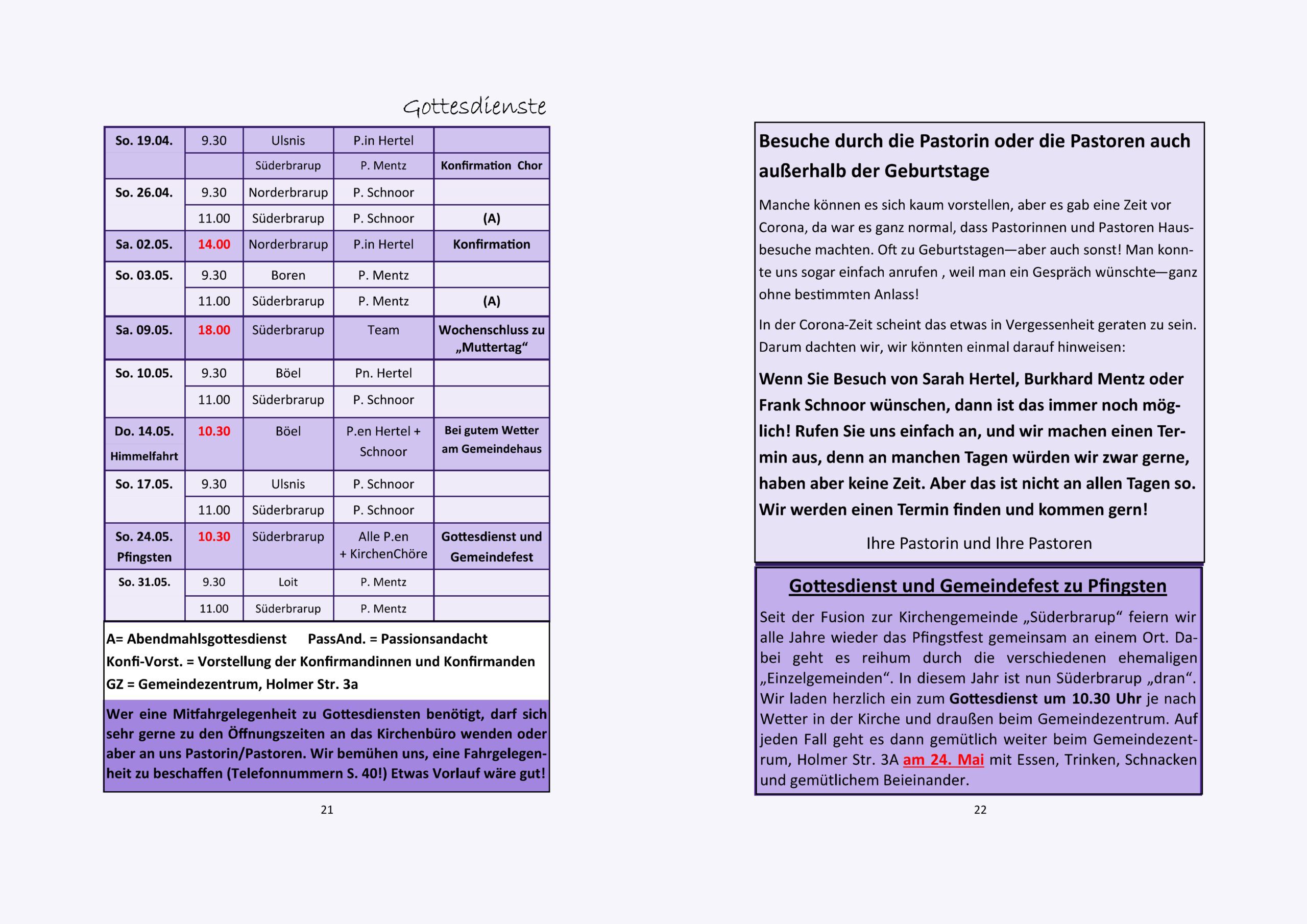 Gottesdienstplan