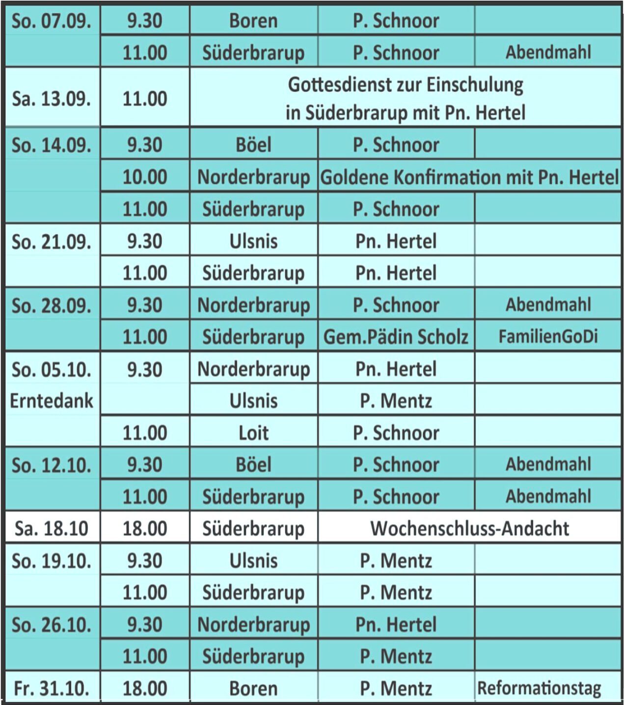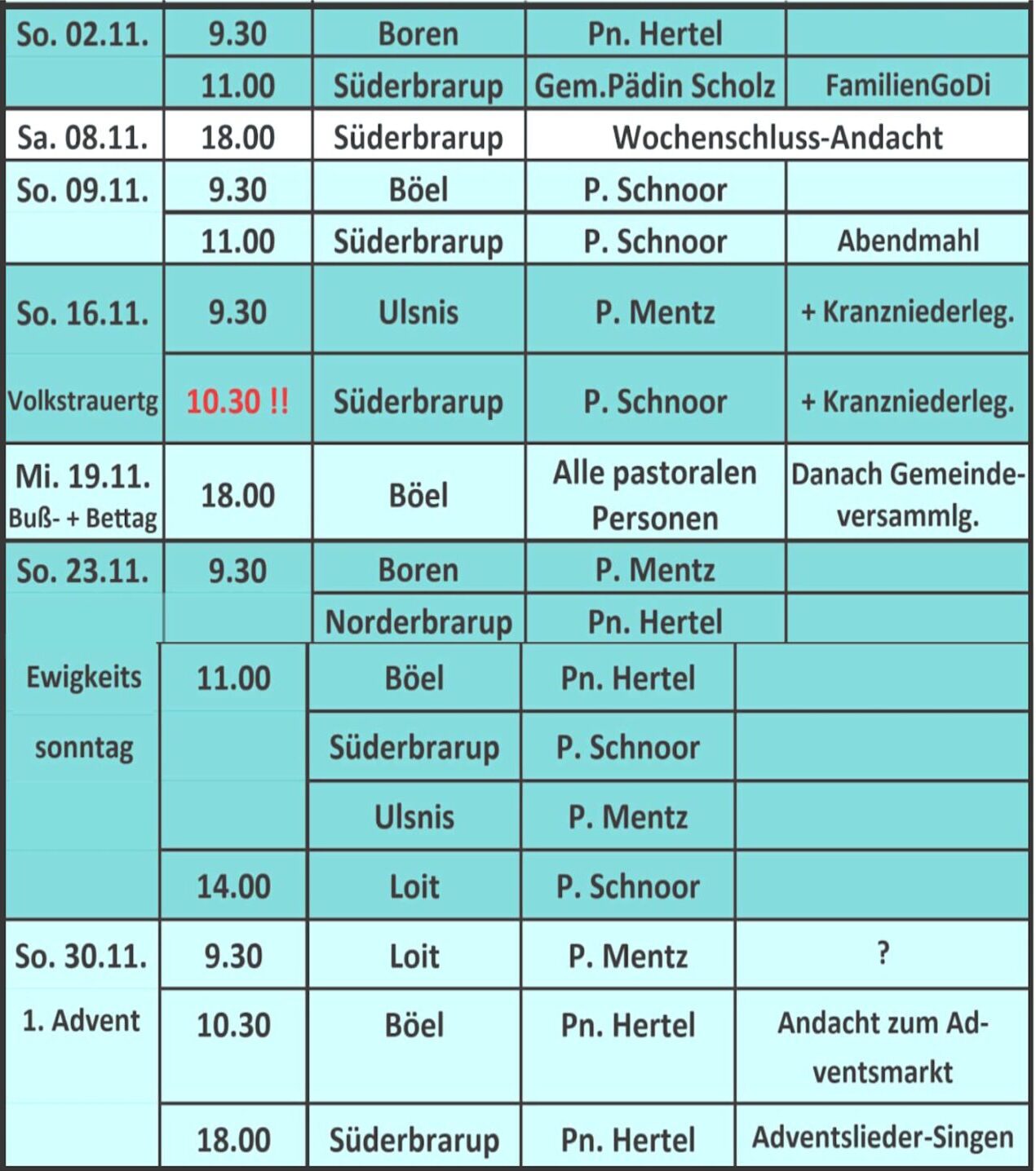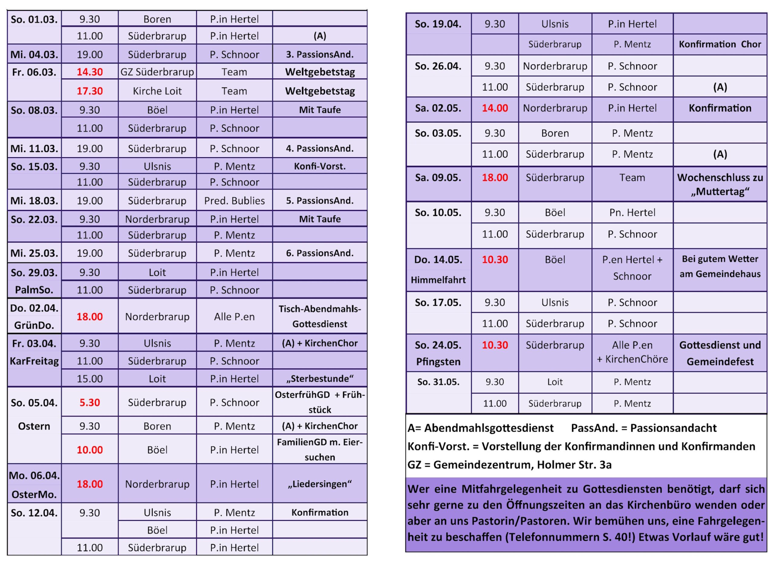 Gottesdienstplan